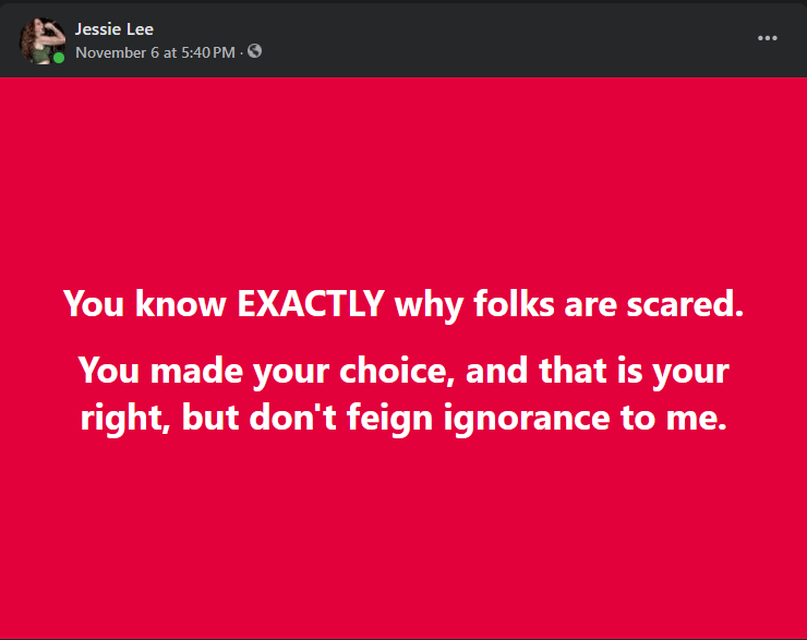 My friends are scared for their safety and none of them are threatening civil war or denying the results.