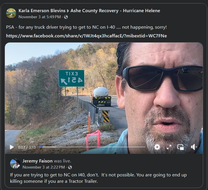 NEWLAND: it’s improved even just in the last few days, but ya’ll, pray for Newland. Pray for Minneapolis, Cranberry, Elk Park, Roaring Creek, Frank, Spear, and Plumtree. And get some food and HELP out this way! ![]()