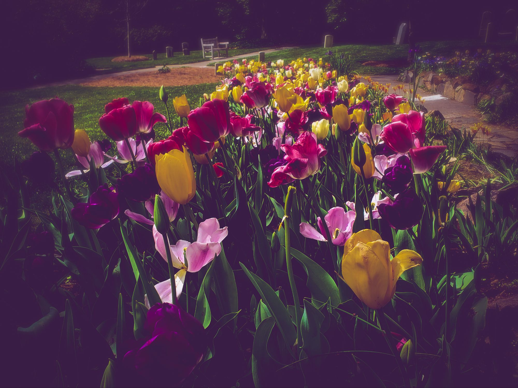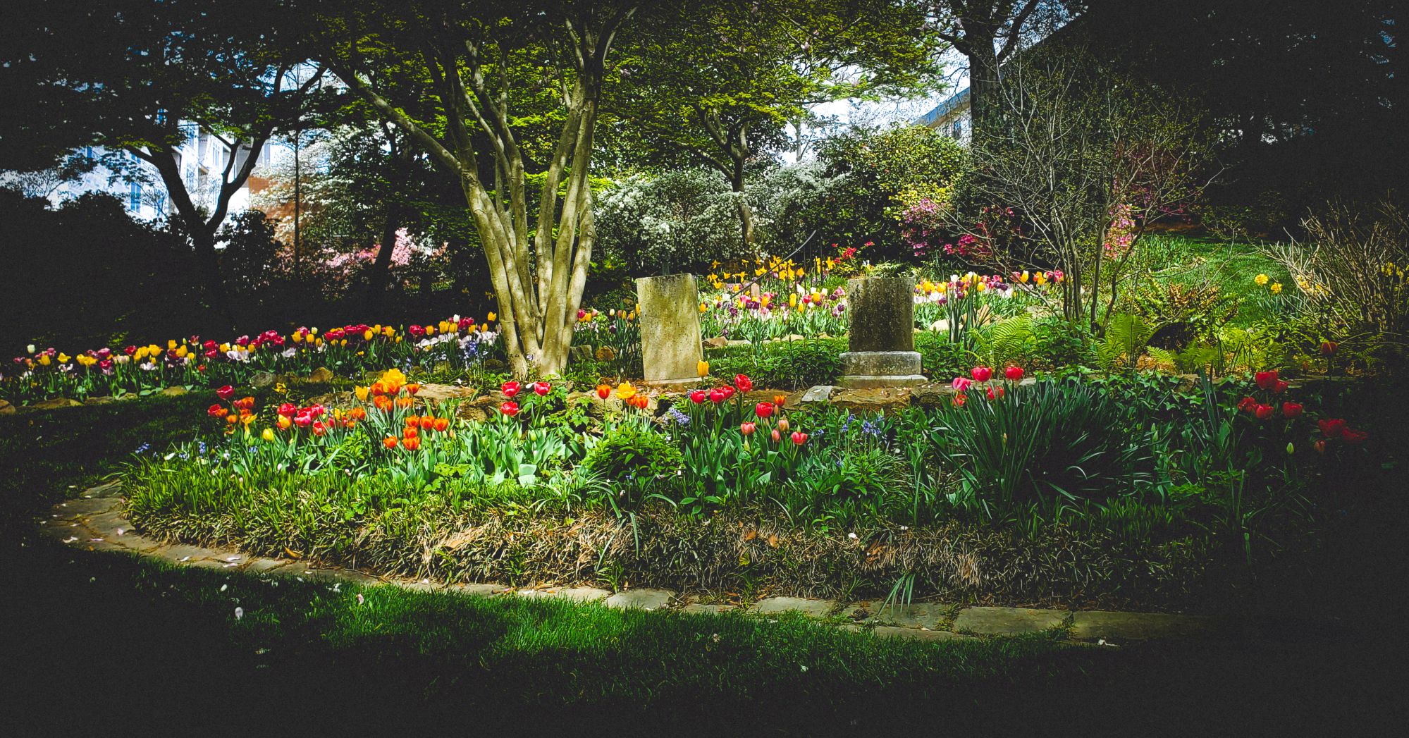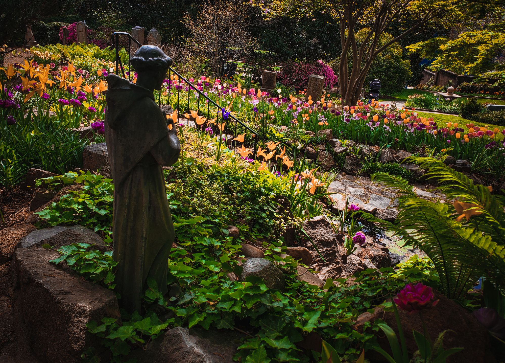 All photos taken in April 2023 at Memorial Gardens, a public park, garden, and cemetery in downtown Concord, NC.