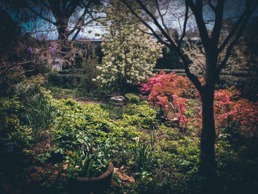 All photos taken in April 2023 at Memorial Gardens, a public park, garden, and cemetery in downtown Concord, NC.